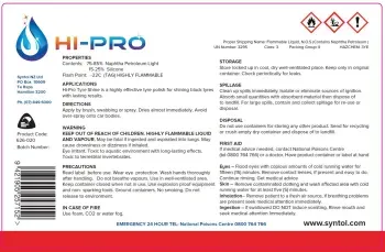 Hi-Pro Tyre Shine is a petroleum (aliphatic solvent) based product. It is recommended as with all industrial oils and cleaners that repeated or prolonged contact with Tyre Shine is kept to a minimum. At no time should Tyre Shine be disposed down sewers, storm water, or any other waterway. If spillage occurs contact your local council authority or refer to the Hi-Pro Tyre Shine MSDS. For further H&S advice contact NZ Parts Online Ltd.