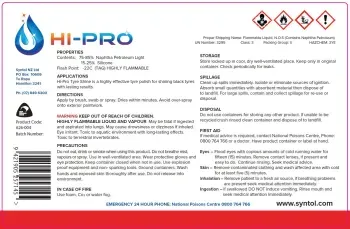 Hi-Pro Tyre Shine is a petroleum (aliphatic solvent) based product. It is recommended as with all industrial oils and cleaners that repeated or prolonged contact with Tyre Shine is kept to a minimum. At no time should Tyre Shine be disposed down sewers, storm water, or any other waterway. If spillage occurs contact your local council authority or refer to the Hi-Pro Tyre Shine MSDS. For further H&S advice contact NZ Parts Online Ltd.