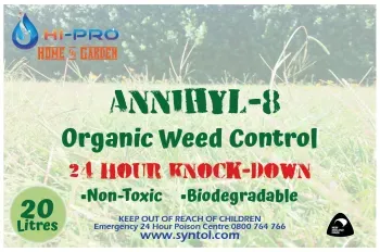 Hi-Pro Annihyl-8 Organic Weed Control is a glycosate-free weed-killer based on coconut fatty acids which cause a quick knock down of all broad leaf plants. Hi-Pro Annihyl-8 is biodegradable and essentially non-toxic, leaving no toxic residue in the environment and is safe around children and pets.