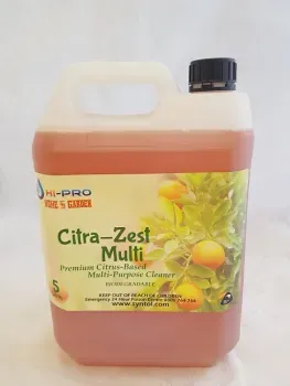 Hi-Pro Citra-Zest Multi is a biodegradable multipurpose cleaner with a mild citrus aroma. Citra-Zest Multi can be diluted to different strengths, giving it the ability to be used on all surfaces around the home or business including engines, ovens, bench tops and glass.