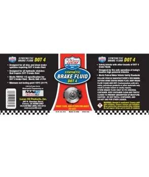 Lucas DOT 4 Brake Fluid is a high quality blend of polyethylene glycol ethers and additives which meet or exceed the industry minimum dry boiling point of 446'F. It meets the Federal Motor Vehicle Safety Standard (FMVSS) No. 116 and SAE J1704 specifications. Lucas DOT 4 Brake Fluid is recommended for use in both disc and drum brake system and clutch system where this type of product is called out for.