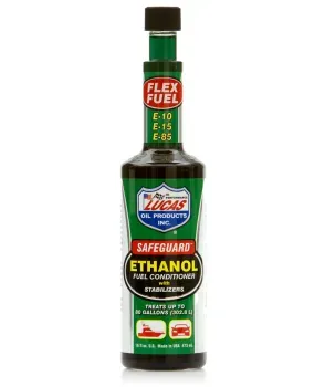 Lucas Safeguard™ Ethanol Fuel Conditioner with Stabilizers was developed to specifically address issues associated with using ethanol based fuels. This applies to E-10, E-15, E-85, pure ethanol and any mixtures in between including gasoline. Our Product is completely soluble in all ethanol fuels and will not harm filters. Lucas Safeguard™ Ethanol Fuel Conditioner with Stabilizers contains effective additives to prevent rust and corrosion associated with the use of ethanol fuels.