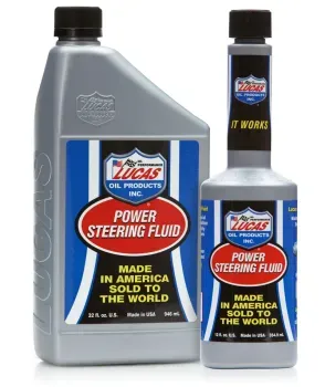 Lucas Power Steering Fluid is a general purpose product. It is formulated with special base oils and additives that add lubricity to help stop wear and improve performance. It contains mild seal swell agents that condition o-rings and seals to help prevent small leaks. Maintains smooth power steering operation and helps stop pump squealing. Lucas Power Steering Fluid contains supplemental oxidation inhibitors and foam inhibitors to help extend fluid life.