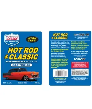 Lucas Hot Rod & Classic Car Motor Oil SAE 10W-40 is for muscle, showroom, classic and trophy cars without catalytic converters. It can be used in racing applications. Not recommended for passenger car use.